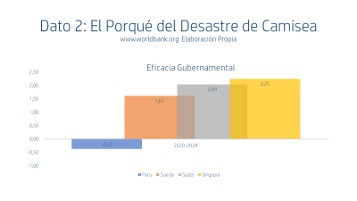 Para graficar con datos peruanos por qué se da el desastre de Camisea entendamos (ver Dato 1) la postración institucional en la que vivimos en comparación con naciones con burocracia mucho más decente como Suecia, Suiza o Singapur. Ellos no solo son diez veces más desarrollados, allá la burocracia no corrupta impide que los ductos se quiebren por causas evitables, que se materialice el grueso de los atentados, o no exista un Plan B ante situaciones inesperadas.